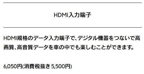 純正HDMI端子はディーラーオプションなので、いつでも後付け可能!